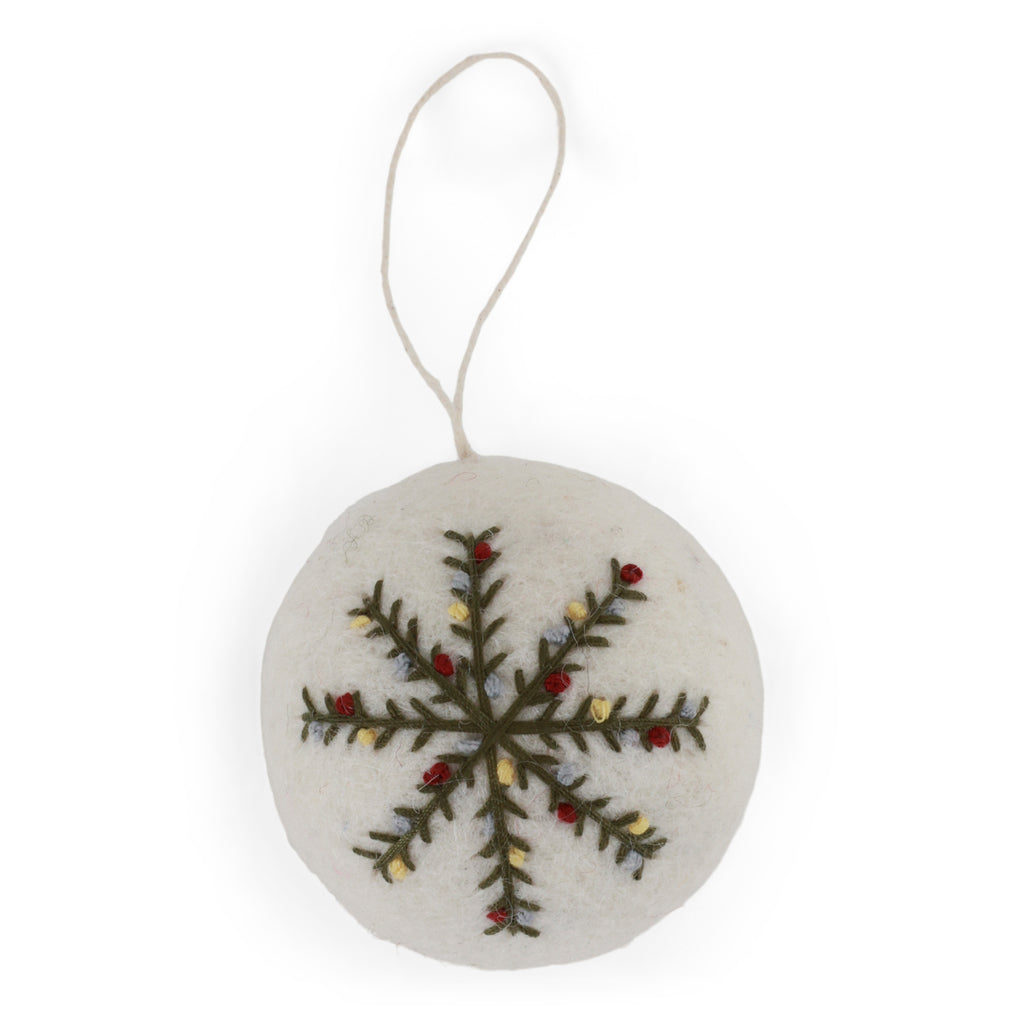Christmas Bauble White Embroidered Snowflake