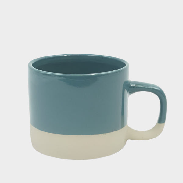 A beautifully simple stoneware cup, perfect for a coffee or a smaller cup of tea. A dark blue/grey coloured glaze with an unglazed clay outer rim.