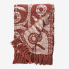 This reversible throw is crafted from 100% recycled cotton and handwoven by artisans in India. Featuring rich rust and off-white colors, it showcases a bold floral pattern inspired by 1950s graphic designs. Unique and versatile.